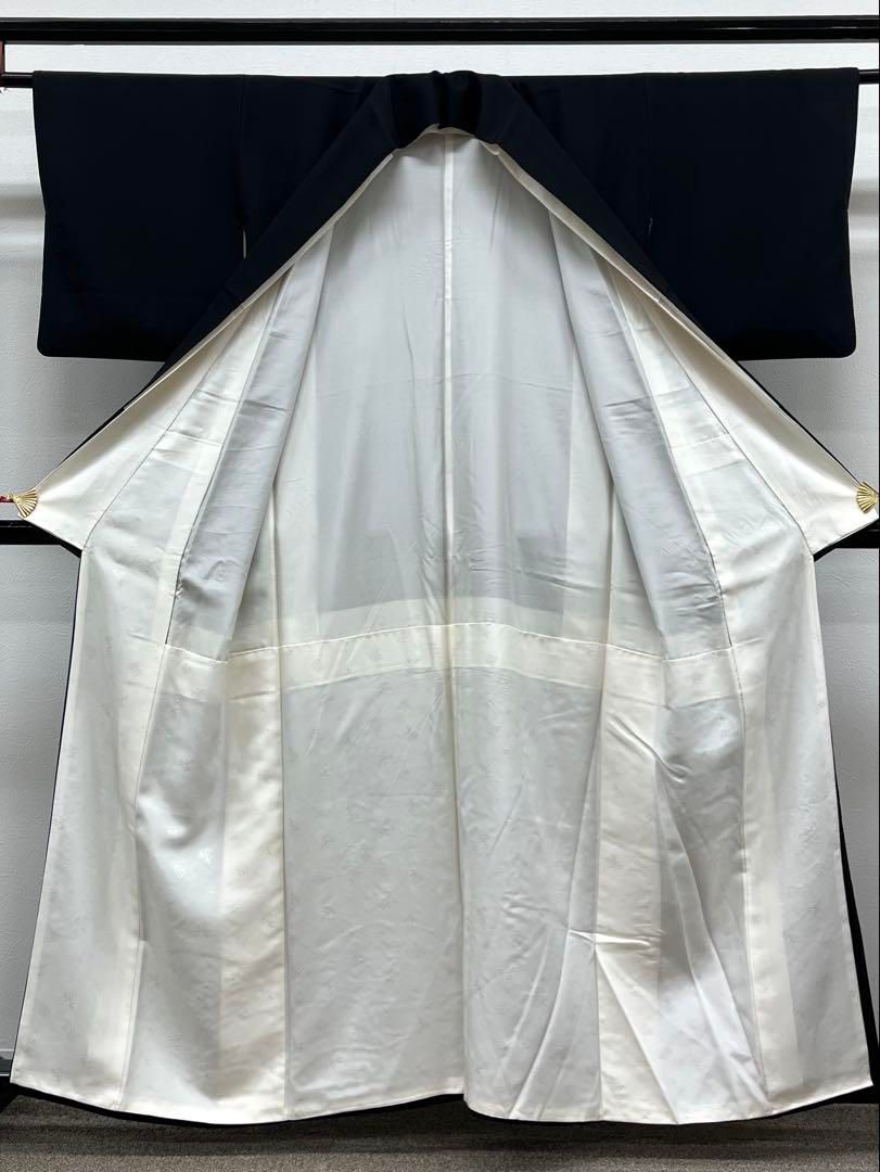 アンティーク 黒留袖 刺繍 五つ紋 金糸 松 舟 波 着物 094b d