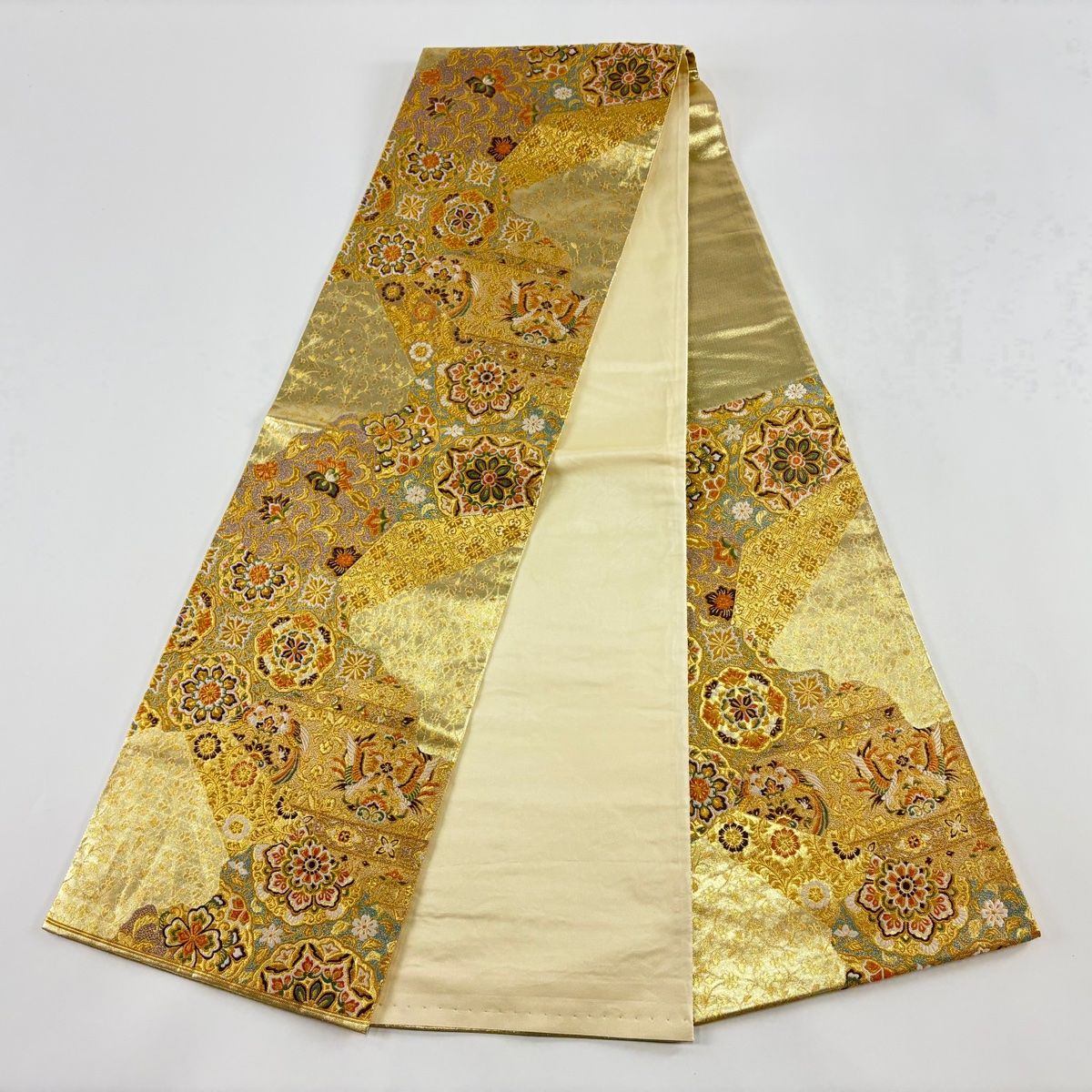 袋帯 秀品 全通箔 華文 向かい鳥 箔 唐織 金色 六通 正絹 GLOBALQUALITYIMPORTS_COM