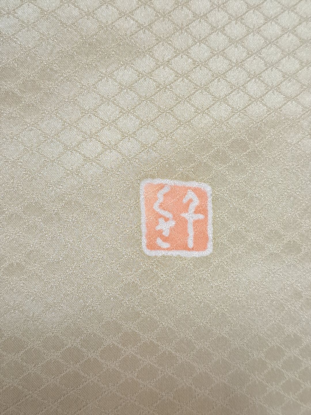 色留袖 裄63 丈157 袖47 正絹 袷 作家物 一つ紋 丸に抱き名荷紋 地紋入りベージュ系色地に鶴と松竹梅 め17S03 k2517 Dの検索結果