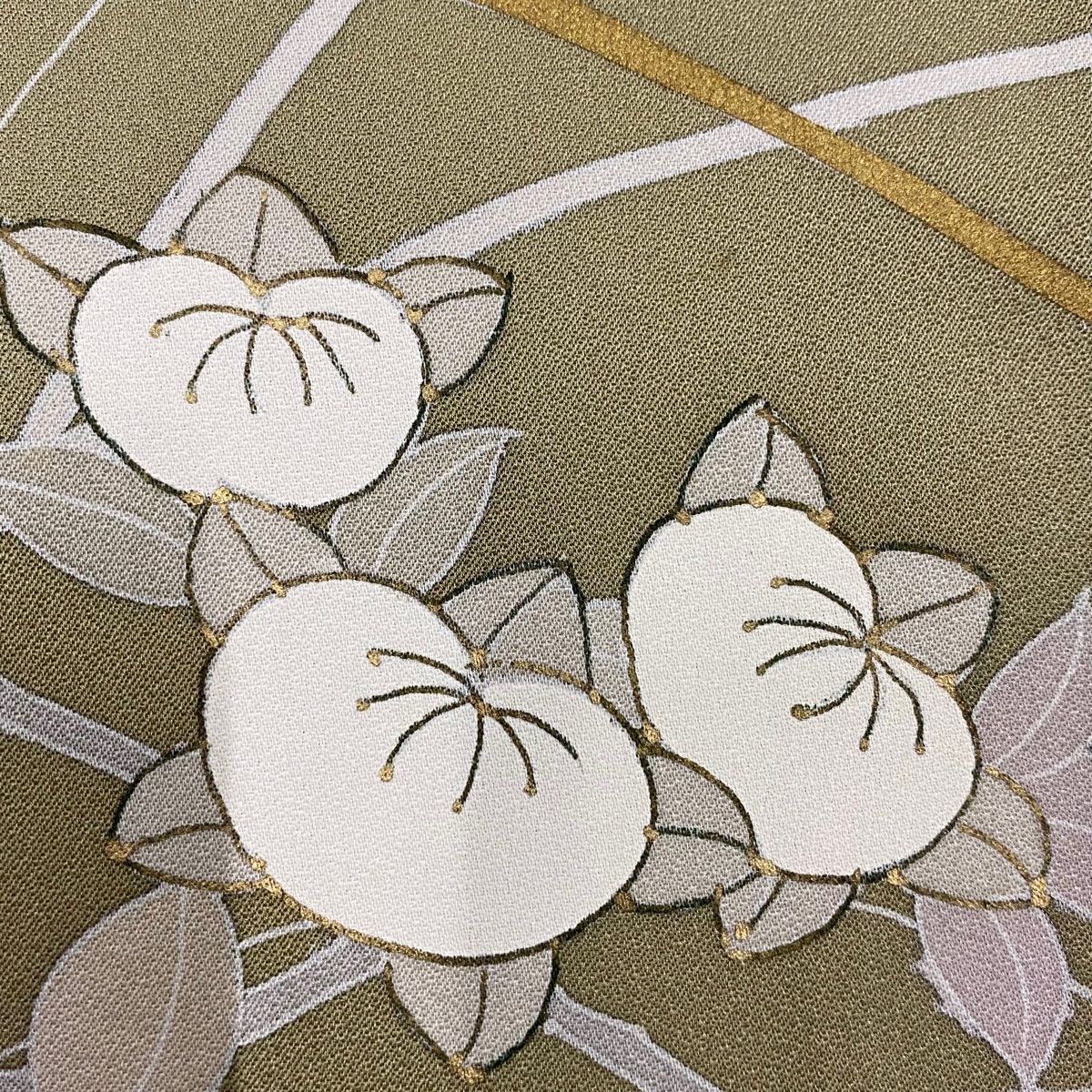 訪問着 身丈161cm 裄丈62.5cm S 袷 橘花 竹 金糸 金彩 茶緑色 正絹 秀品 一つ紋の検索結果