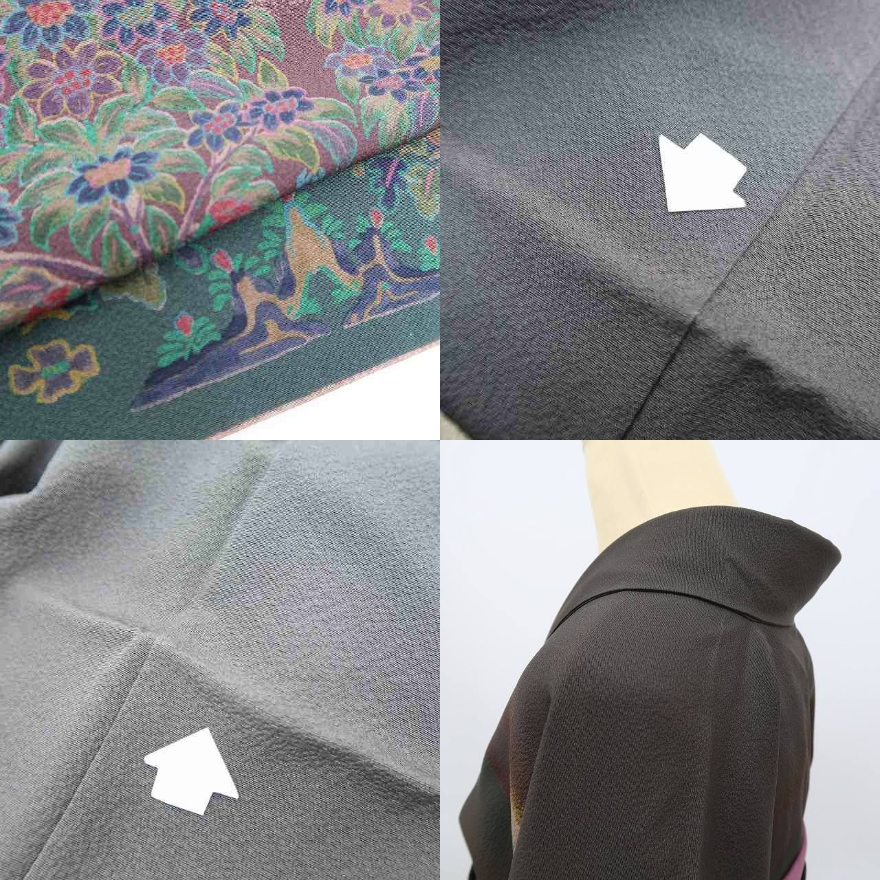 訪問着 身丈166cm 裄丈67cm M 袷 落款 鶯 竹 螺鈿 金彩 深緑 正絹 秀品