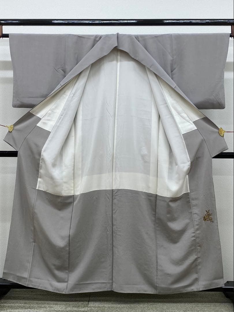 色留袖 作家物 扇子に花模様 空色鼠 トールサイズ K-5446