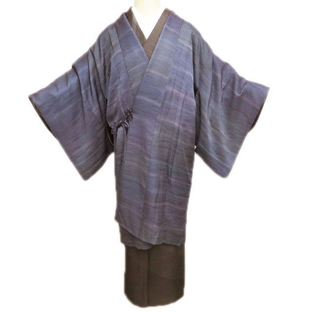 コート 道中着 着物 正絹 リバーシブル 暈し 地模様 葡萄鼠色 多色 黒色 身丈101.5cm 裄65cm きもの北條 A1282-4 GLOBALQUALITYIMPORTS_COM