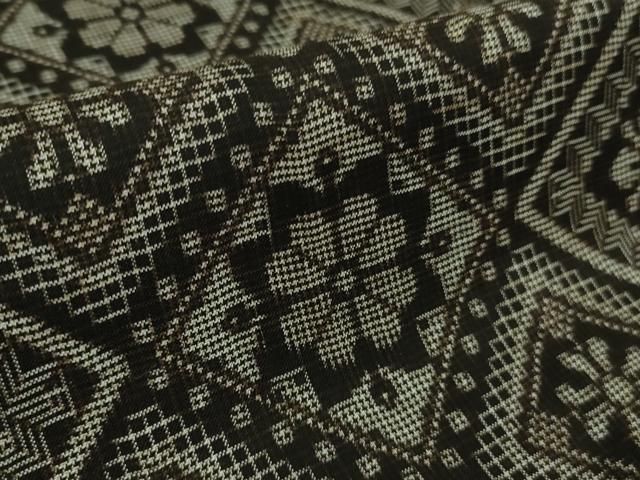 平和屋着物 小千谷紬 笹竹花文 正絹 AABA9463ck