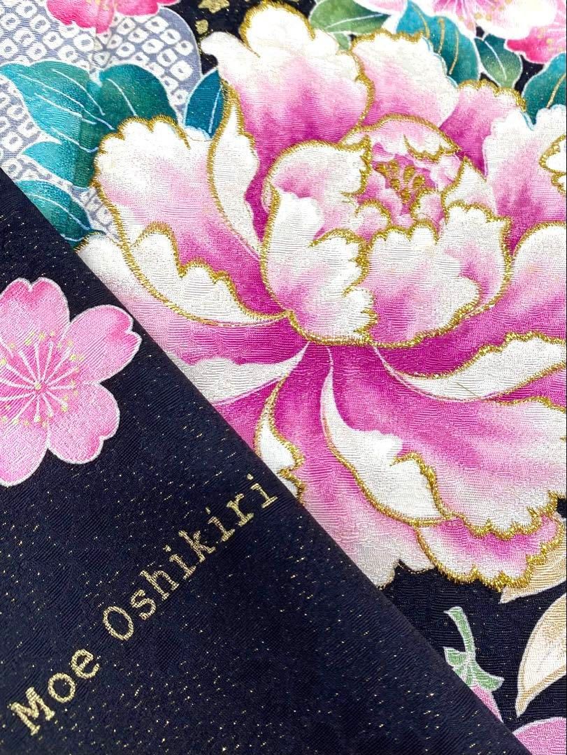 2尺袖 ブランド ポリエステル着物 セシルマクビー 金彩 牡丹 紋意匠 袴用