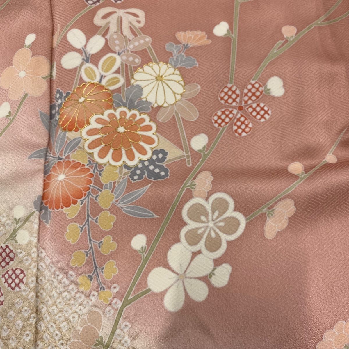 訪問着 身丈162.5cm 裄丈66cm M 袷 枝梅 菊 絞り 金彩 ピンク 正絹 秀品の検索結果