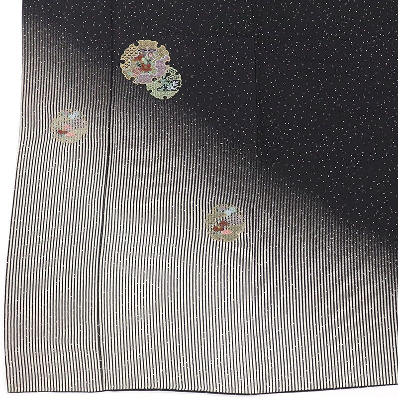 訪問着 袷 レディース 正絹 黒 白ベージュ 雪輪 刺繍 モダン 身丈161cm 裄丈65.5cm パーティ 会食 Mサイズ相当 GLOBALQUALITYIMPORTS_COM