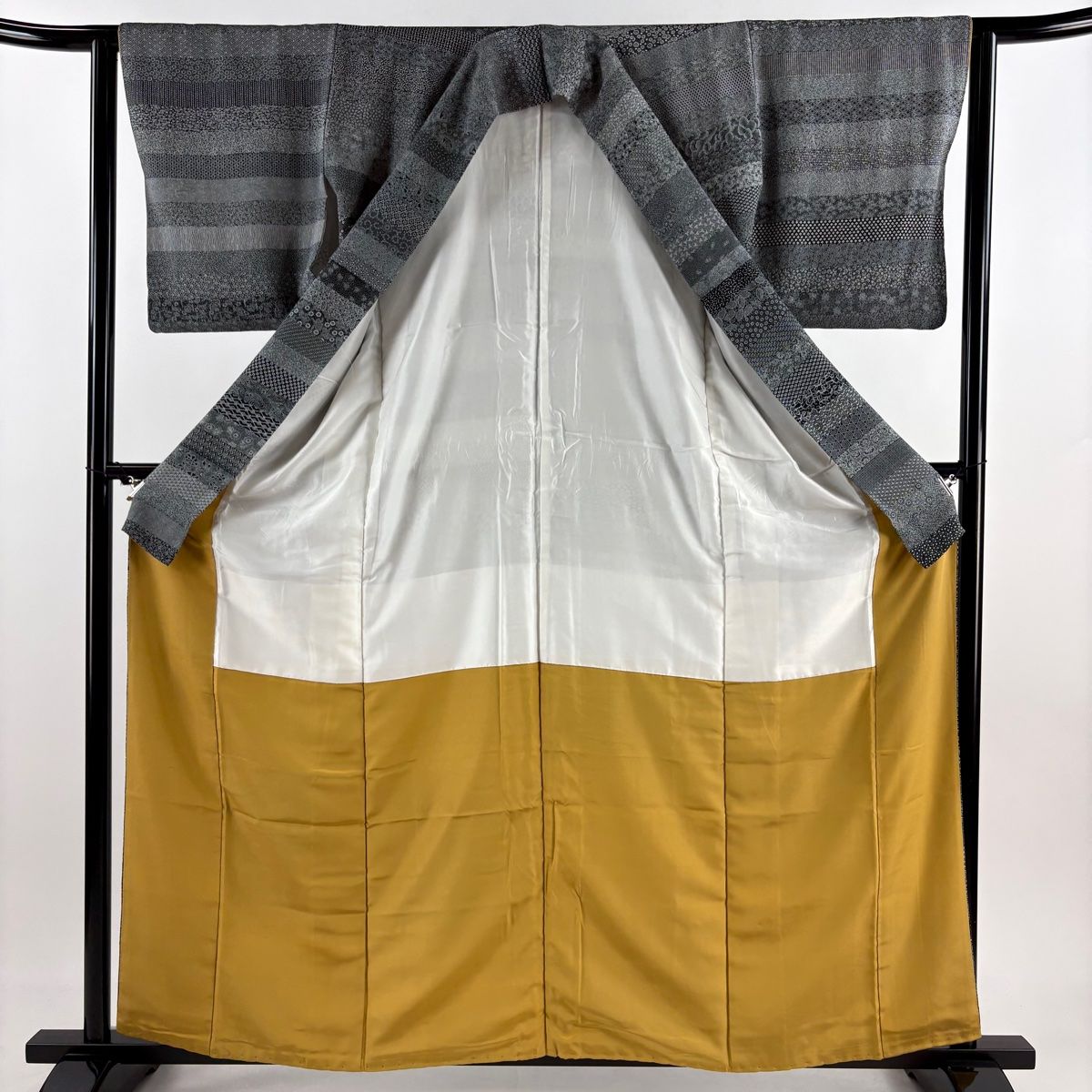 小紋 身丈162cm 裄丈64.5cm M 袷 格子 灰緑 正絹