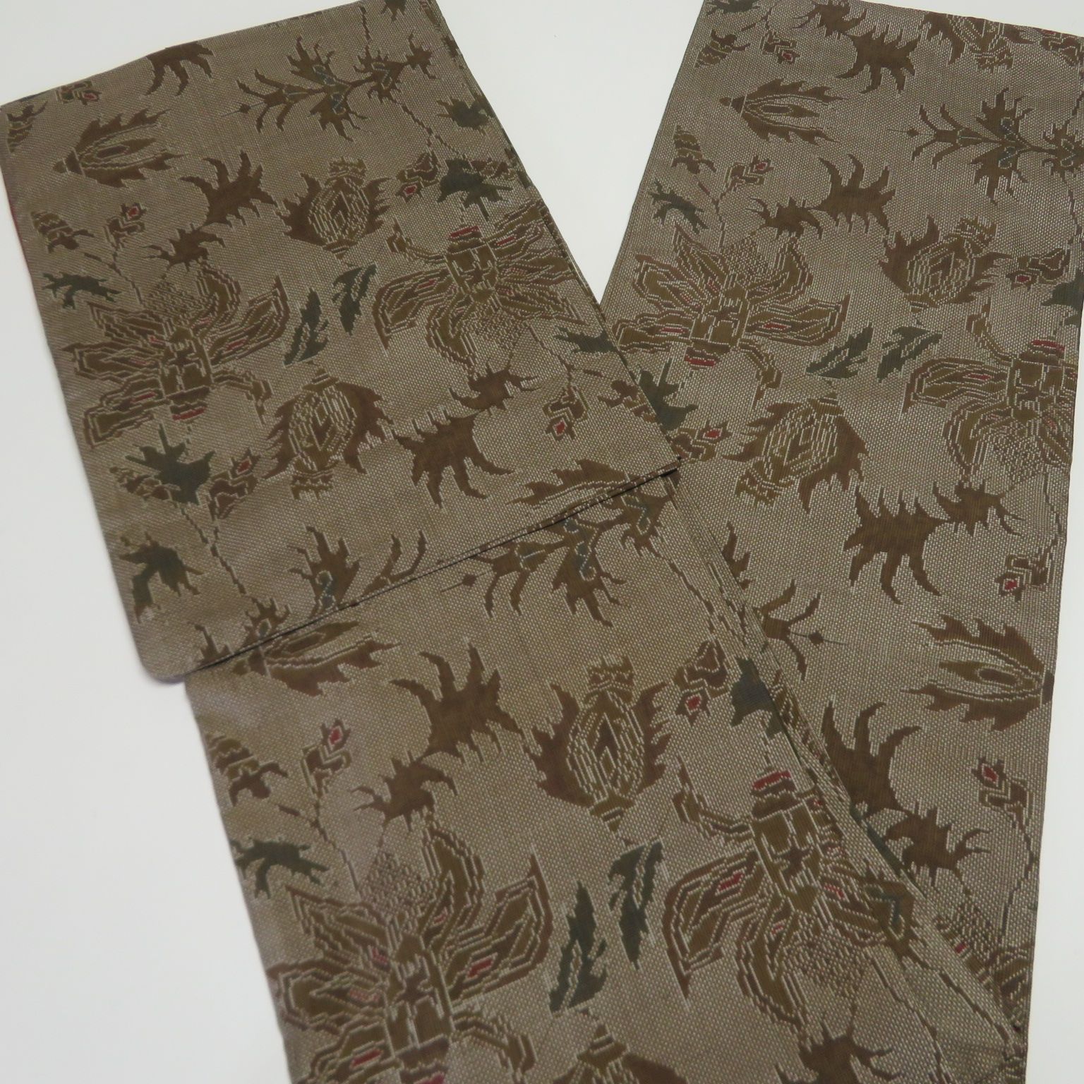 平和屋着物 アンティーク 大正ロマン 九寸名古屋帯 唐織 枝花文 金糸 正絹 CAAY9837hy