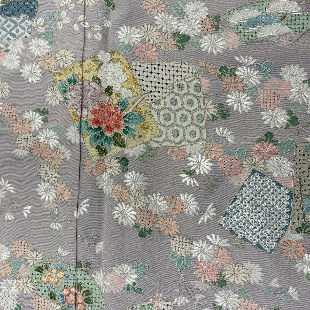 訪問着 身丈170cm 裄丈68cm L 袷 落款あり 草花 破れ色紙 金糸 刺繍 灰紫 正絹の検索結果