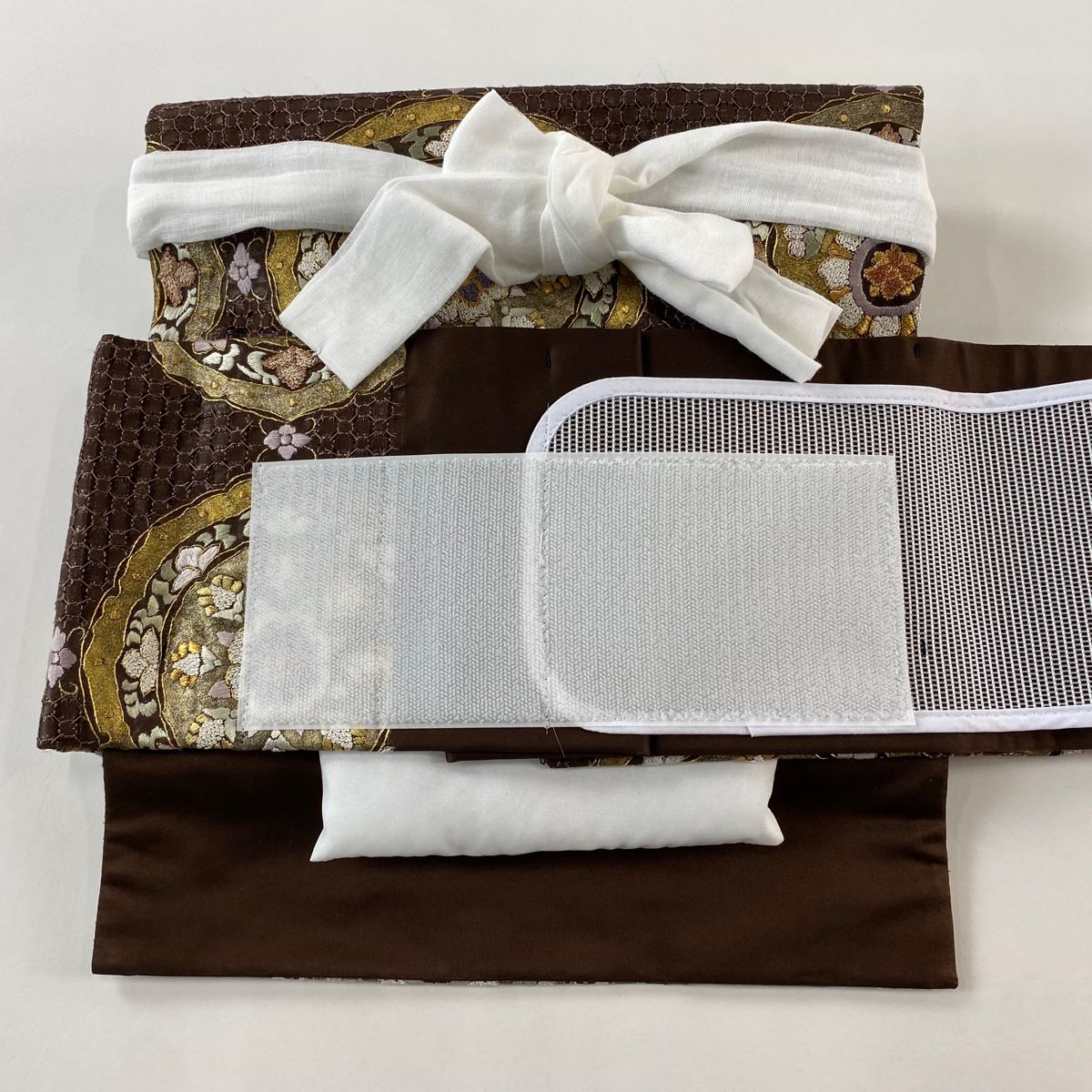 付け帯 作り帯 華文 刺繍 箔 焦茶色 正絹の検索結果