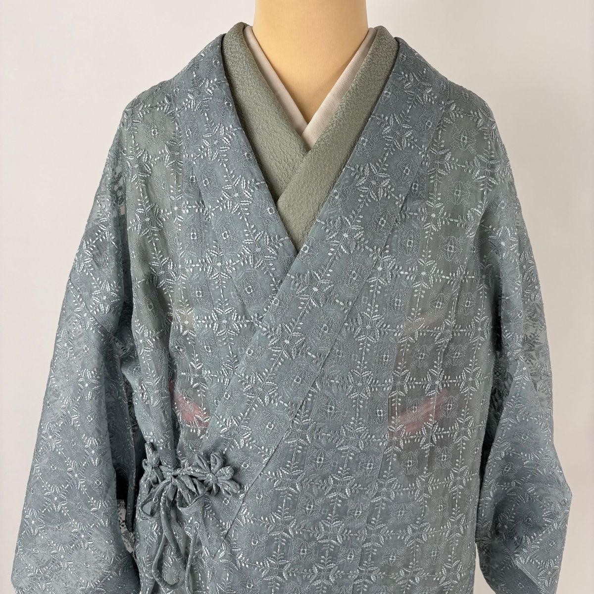 道行 身丈101cm 裄丈64cm M 和装コート 幾何学 青灰色 正絹