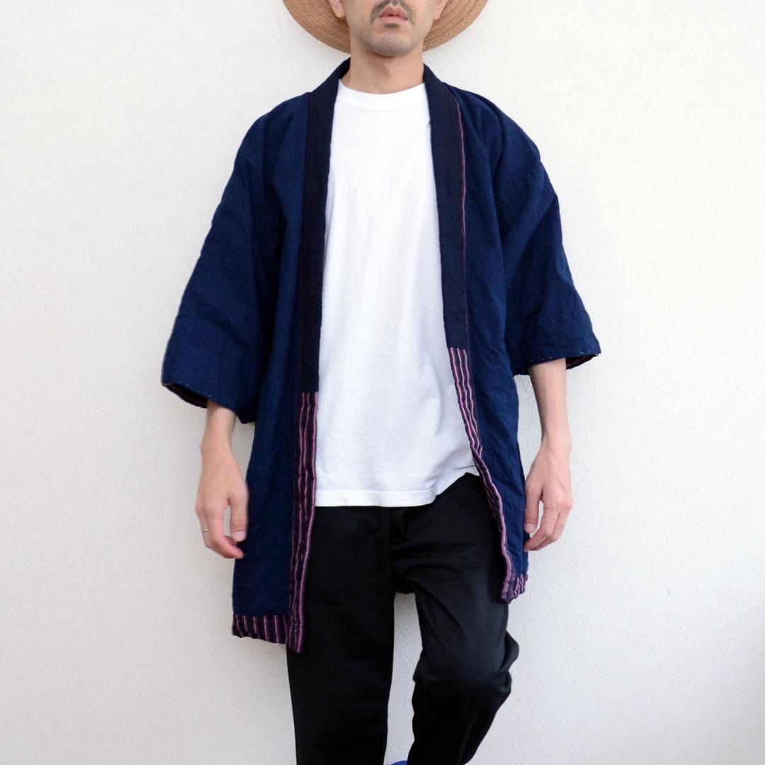 野良着|藍無地裏地 × 縞木綿 ジャパンヴィンテージ|ハンドメイド リメイクにも Japanese Vintage Noragi Jacket – Indigo Plain Lining × Striped Cotton Fabricの検索結果
