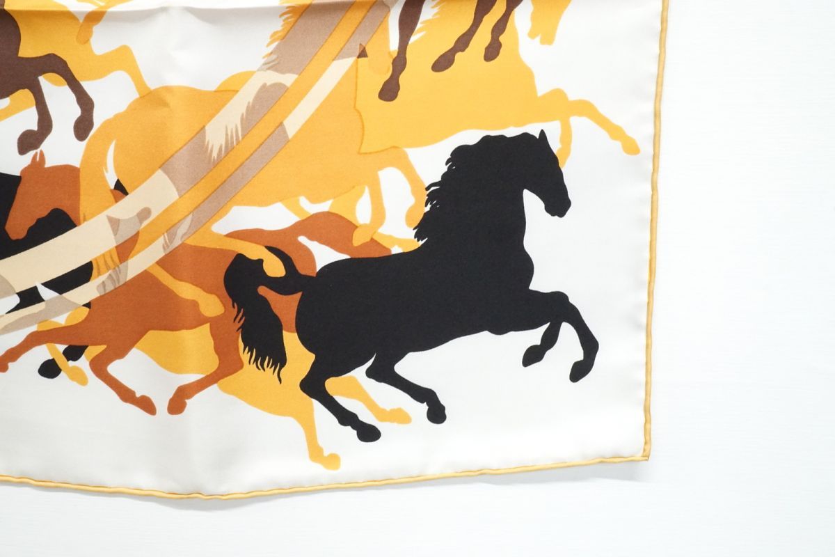 エルメス HERMES カレ 90 LES VOITURES A TRANSFORMATION 折畳み式幌の馬車 スカーフ シルク オレンジ マルチ レディース
