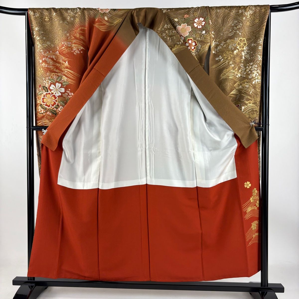 振袖 身丈155.5cm 裄丈65.5cm M 袷 桜 波 金糸 金銀彩 茶色 正絹 秀品の検索結果
