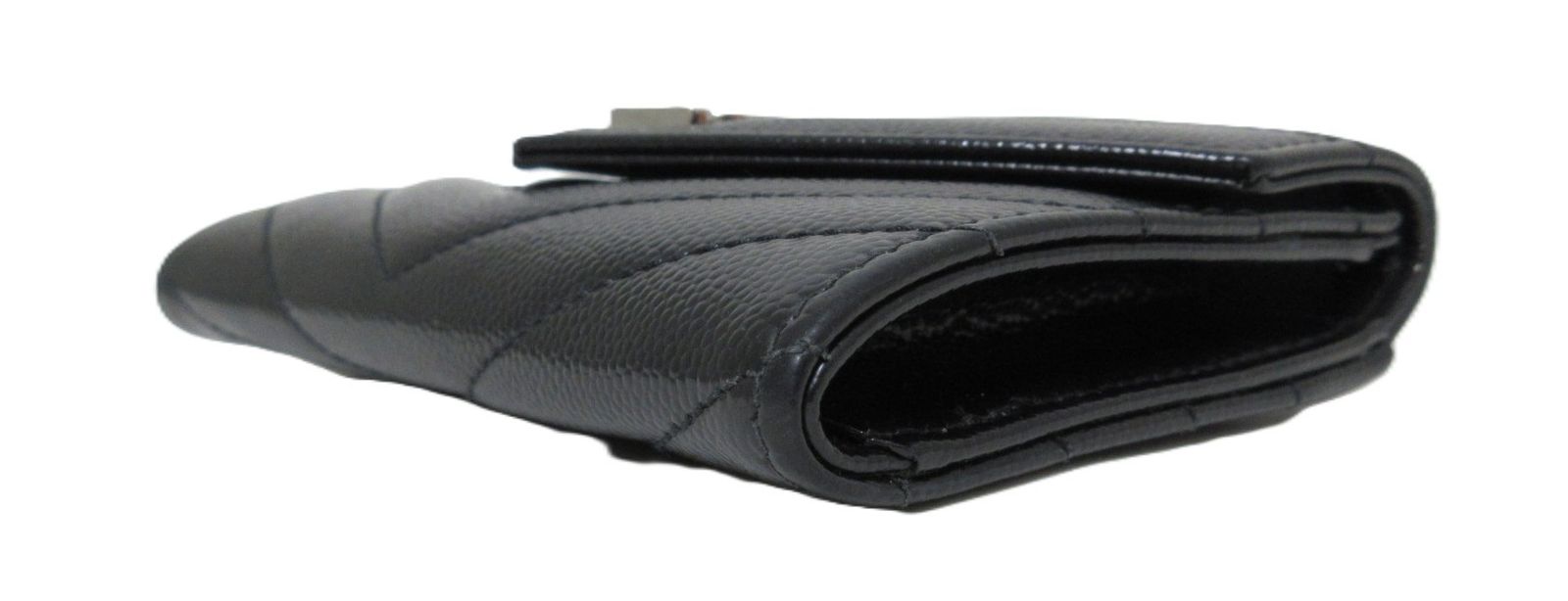 YSL サンローラン パリ VスティッチYSLロゴレザーカードケース 414404 ブラック シルバー カードケース 小銭入れ GLOBALQUALITYIMPORTS_COM
