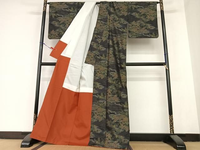 平和屋着物 本場大島紬 風景草花文 黒地 正絹 AABB0355zgの検索結果