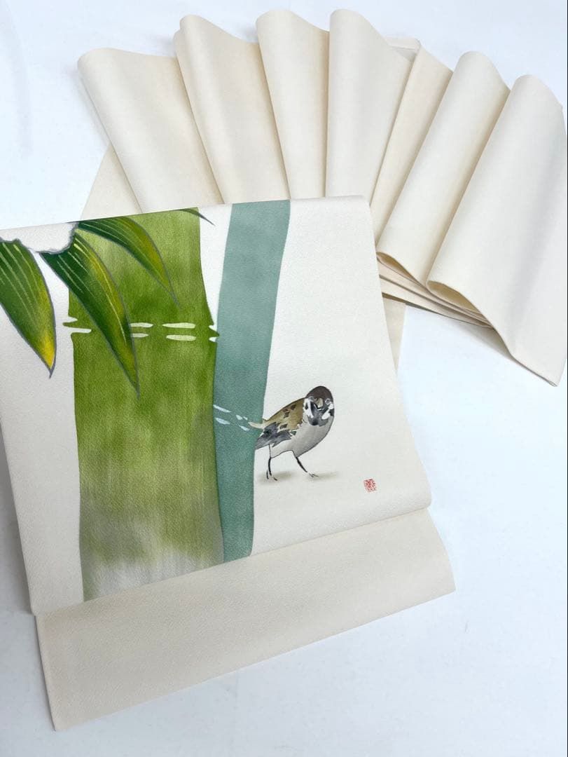 作家物 九寸名古屋帯 開き名古屋 竹笹 雀 鳥 正絹 Q1181の検索結果