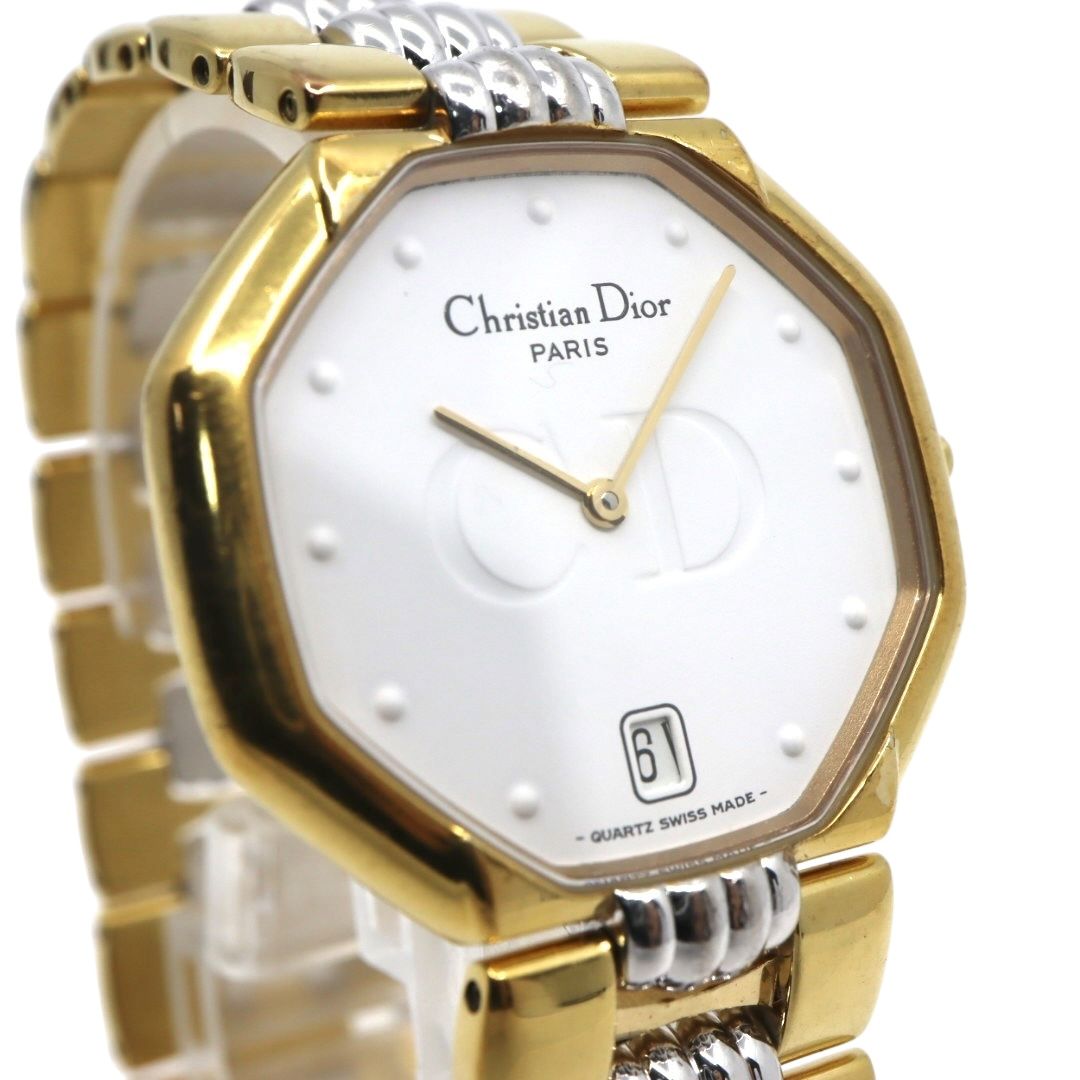 電池交換済 クリスチャンディオール 腕時計 45.134 レディース クオーツ デイト オクタゴン 八角形 ゴールド ホワイト文字盤 コンビブレス ヴィンテージ クラシック エレガント SWISS MADE クリーニング済 G2 GLOBALQUALITYIMPORTS_COM