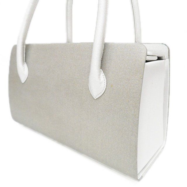 和装バッグ 秀品 ビーズバッグ フォーマル 花火し 霞 銀糸 白 ビーズ 和装小物