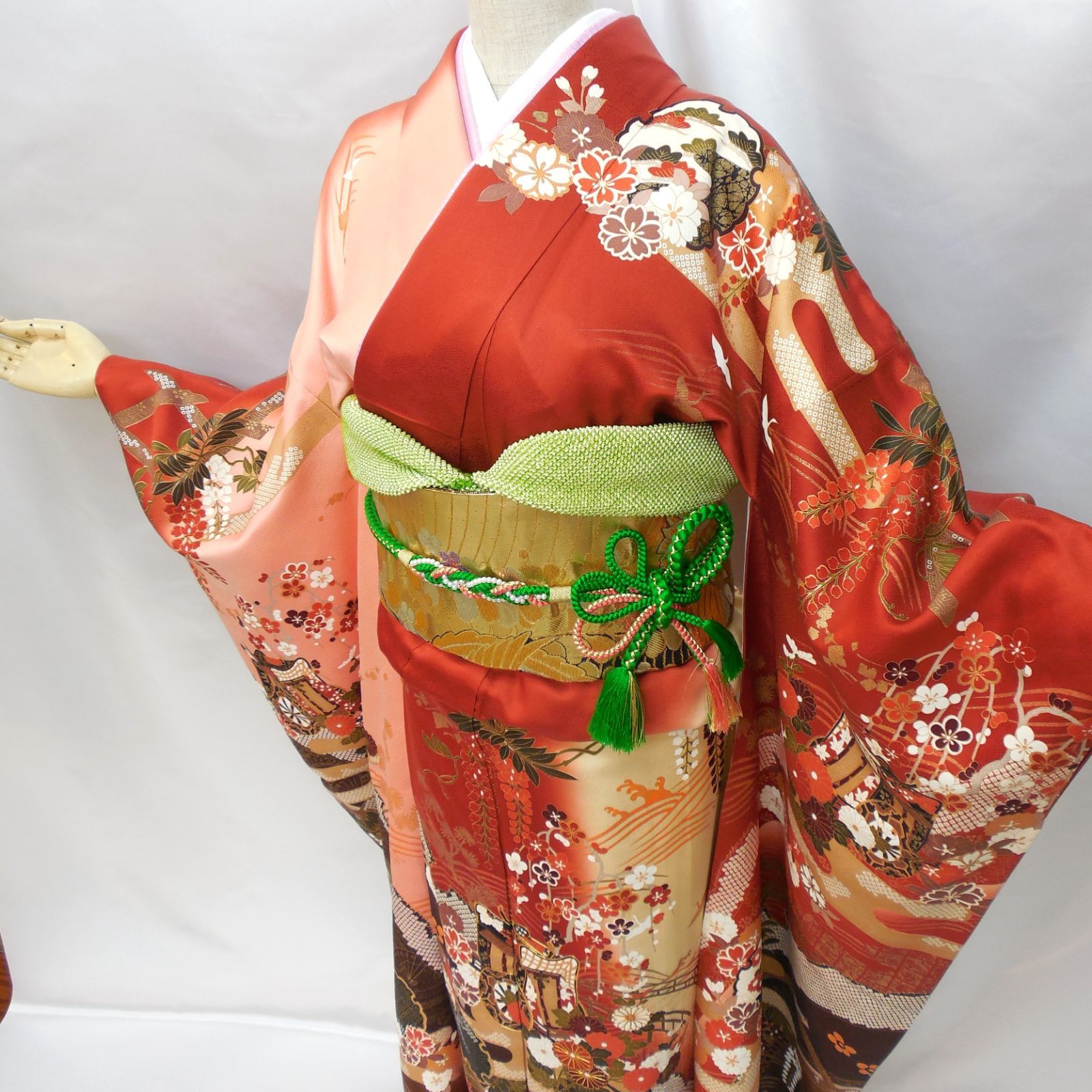 フォロワ割 振袖フルセット 正絹 成人式 振袖 7点セット 振袖Lサイズ Mサイズ レッド系 古典柄 華やかの検索結果