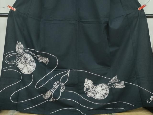 平和屋着物∴夏物 訪問着 浴衣兼用 絞り 瓢箪 黒地 綿 CAAY4665ng GLOBALQUALITYIMPORTS_COM