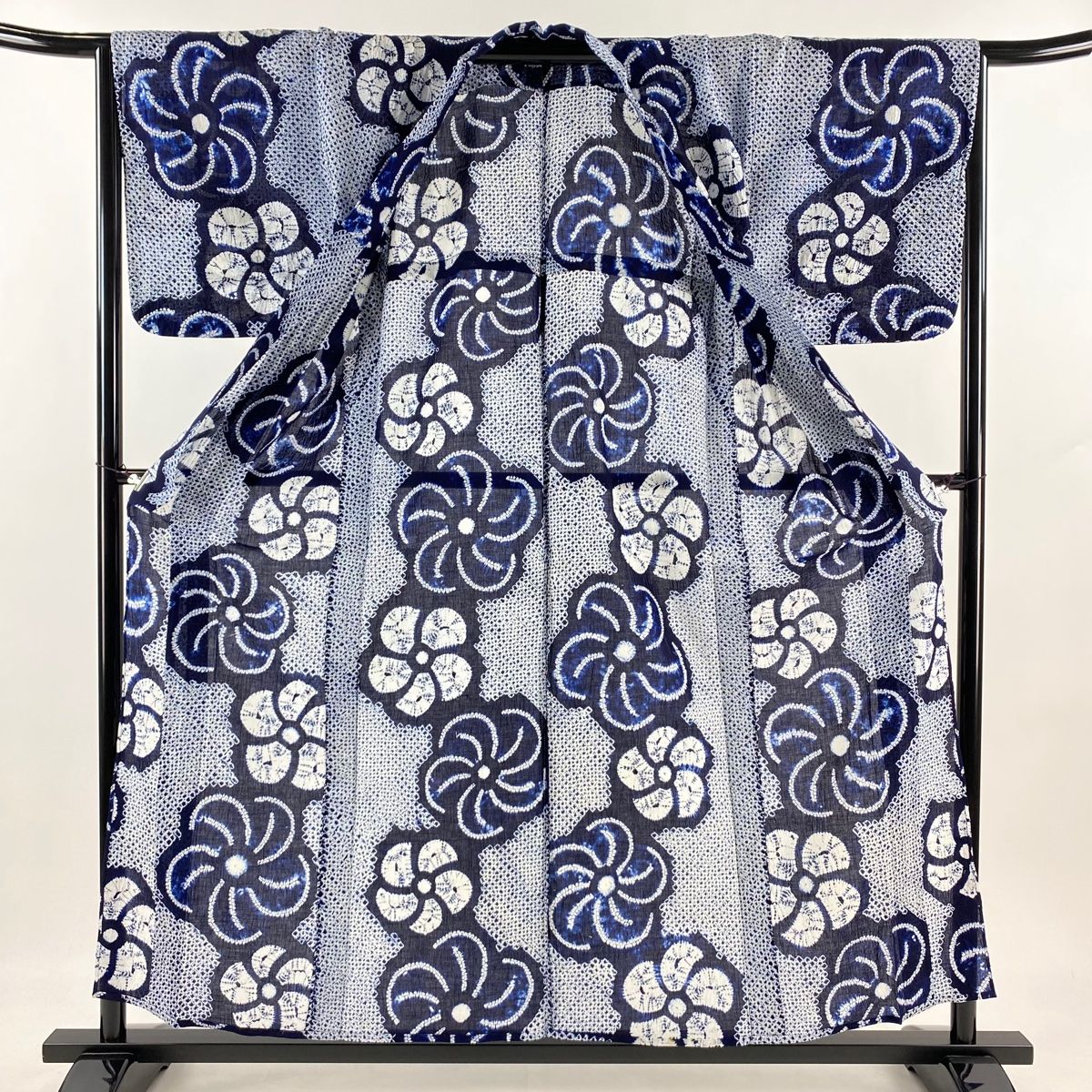 浴衣 身丈155.5cm 裄丈66cm M 絞り浴衣 ねじ梅 紺色 綿 GLOBALQUALITYIMPORTS_COM