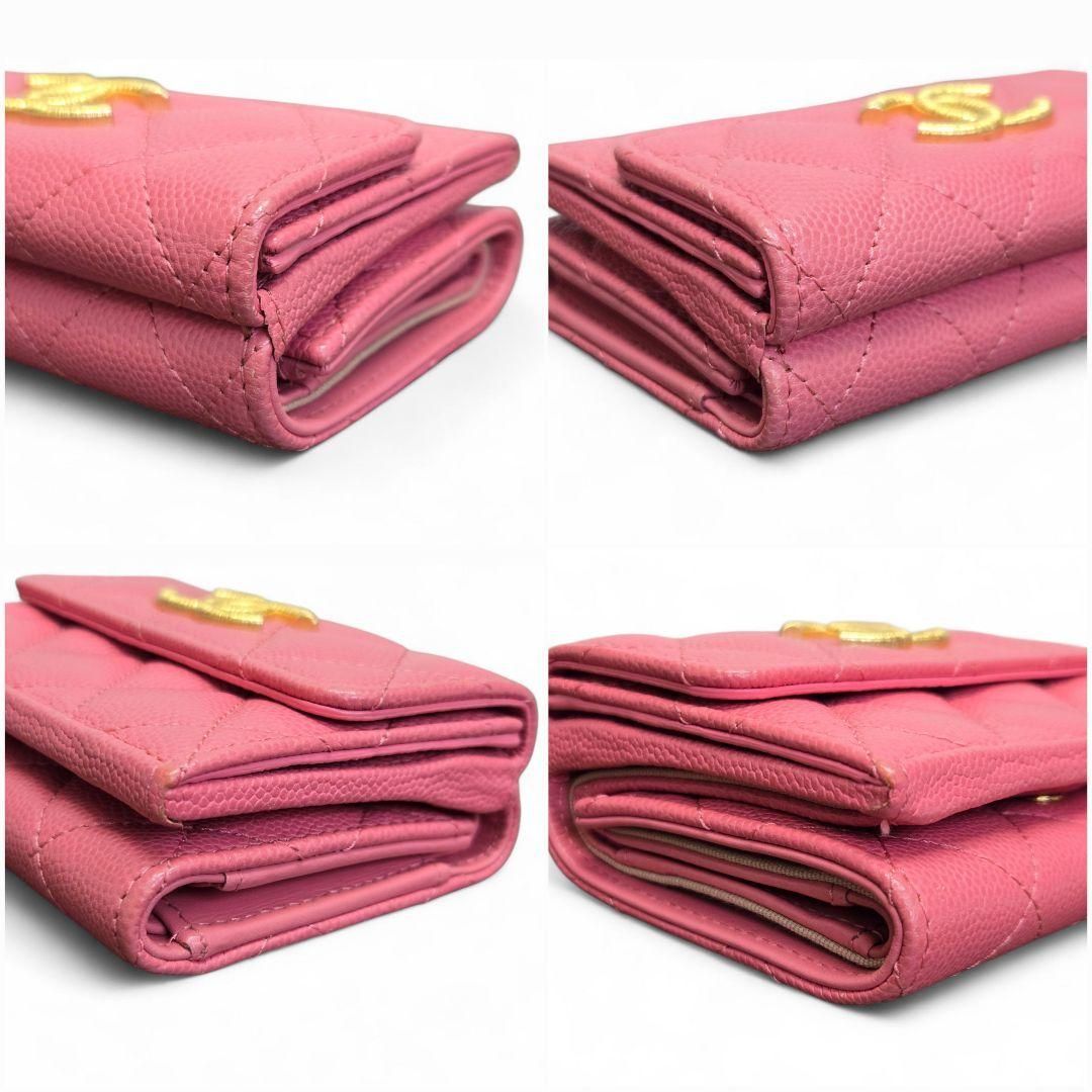 ランク CHANEL シャネル マトラッセ キャビアスキンコンパクトウォレット ピンク 三つ折り財布 Wホックの検索結果