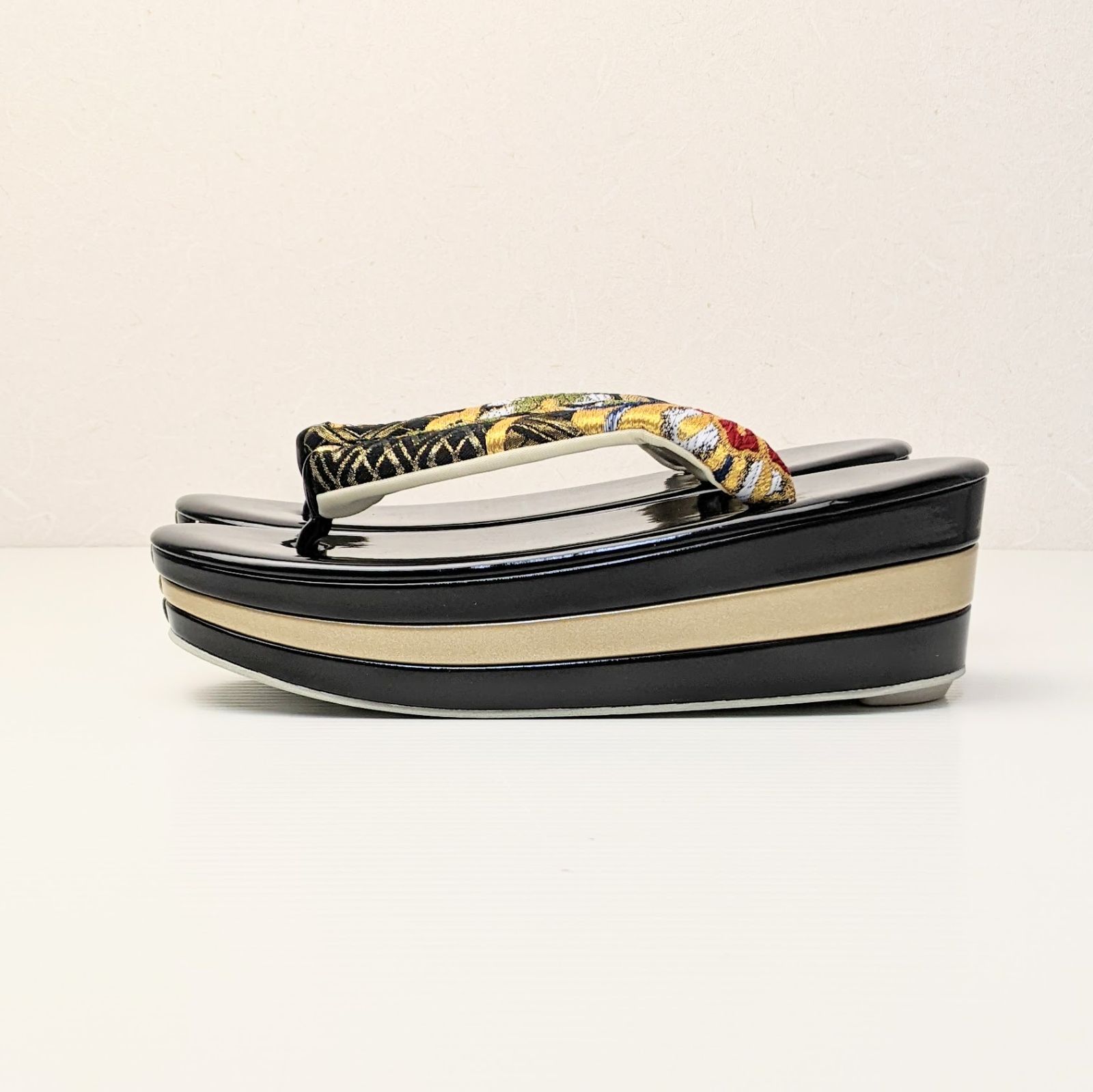 三枚芯 草履バッグセット 振袖用帯地 黒×金 S M L LLサイズ w43-5の検索結果