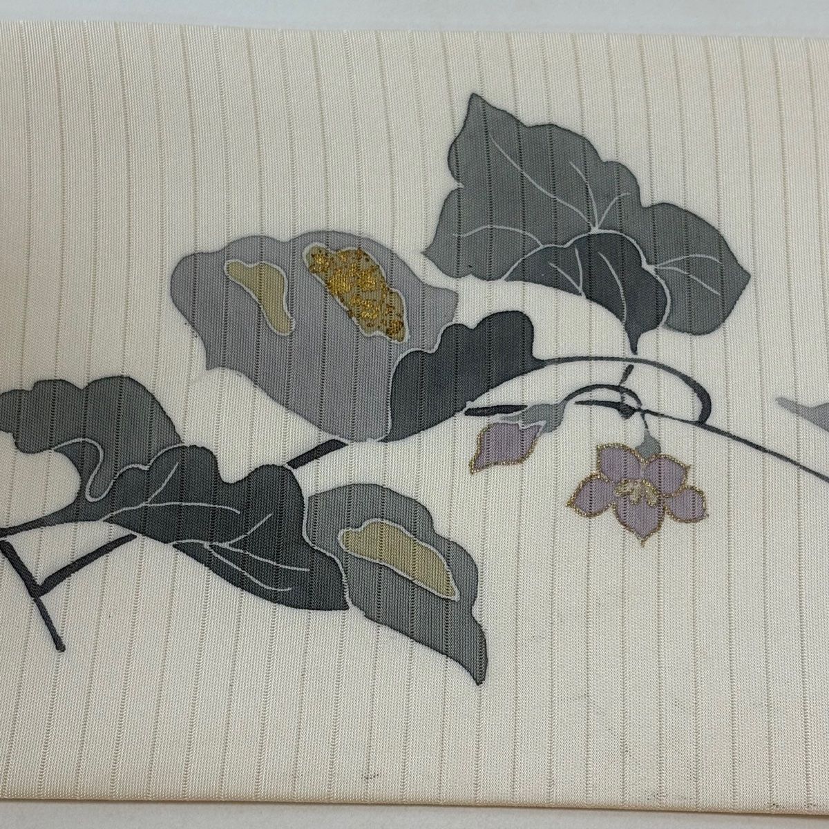 名古屋帯 秀品 夏帯 草花 金彩 クリーム 正絹 GLOBALQUALITYIMPORTS_COM