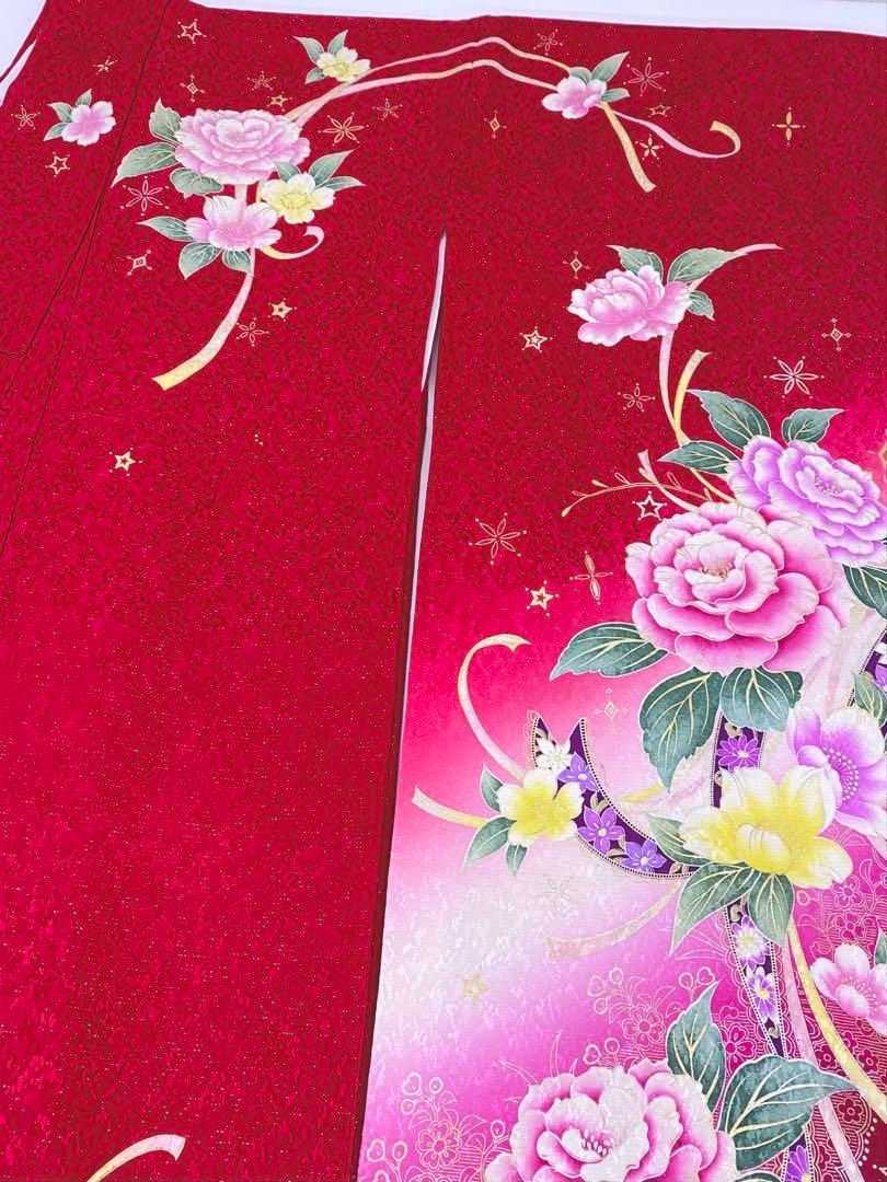 振袖 身丈156cm 裄丈64cm M 袷 鴛鴦 草花 染め分け ぼかし 赤 正絹