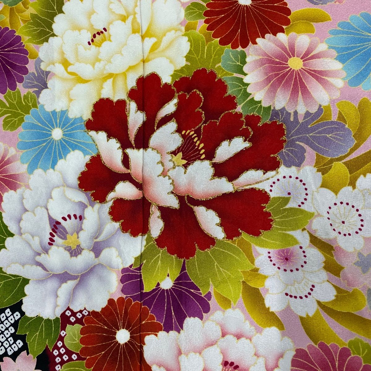 振袖 身丈152cm 裄丈64.5cm M 袷 牡丹 菊 箔 ピンク 正絹の検索結果