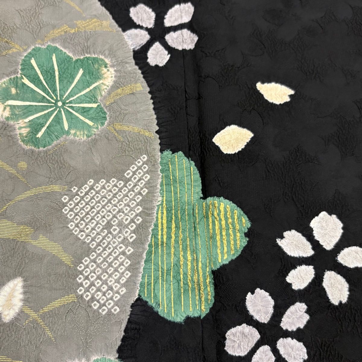 振袖 身丈168cm 裄丈70.5cm L 袷 桜 雪芝 絞り 金彩 黒 正絹の検索結果