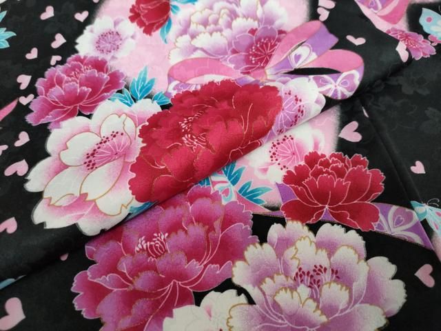 平和屋着物 anan ブランド 小振袖 二尺袖 長襦袢 無双仕立て セット 花蝶文 黒地 金彩 半衿刺繍 洗える着物 DAAW5665ud GLOBALQUALITYIMPORTS_COM