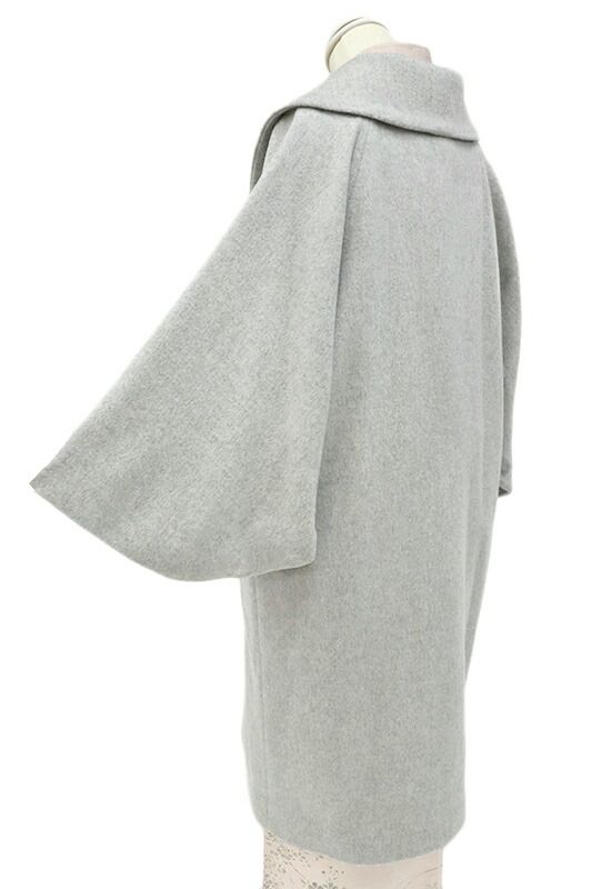 和装コート カシミヤ混 ライトグレー 長羽織 道中着 灰色 ロング丈 フリーサイズ へちま衿 くるみボタン 礼装用 訪問着 起毛仕 No.3-0223 GLOBALQUALITYIMPORTS_COM