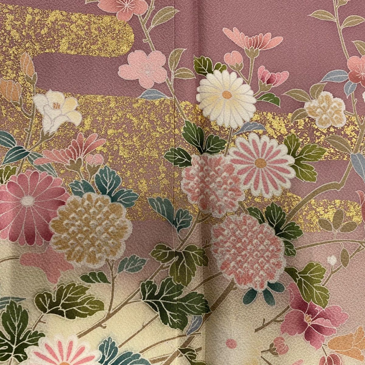 訪問着 身丈163cm 裄丈67cm M 袷 草花 金彩 ぼかし ピンク 正絹 秀品