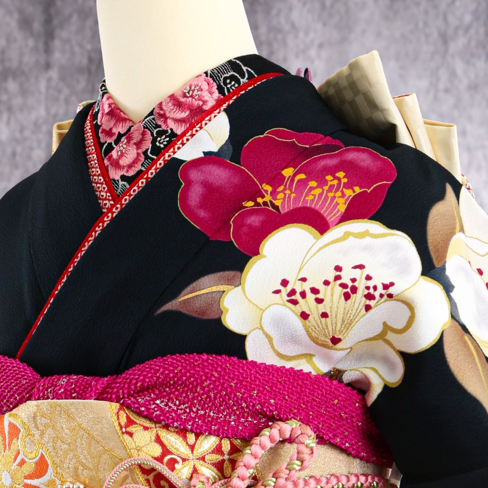 振袖フルセット 振袖セット 振袖 LLサイズ 黒×レトロ 成人式 着物 晴れ着 7点フルセット F-449の検索結果