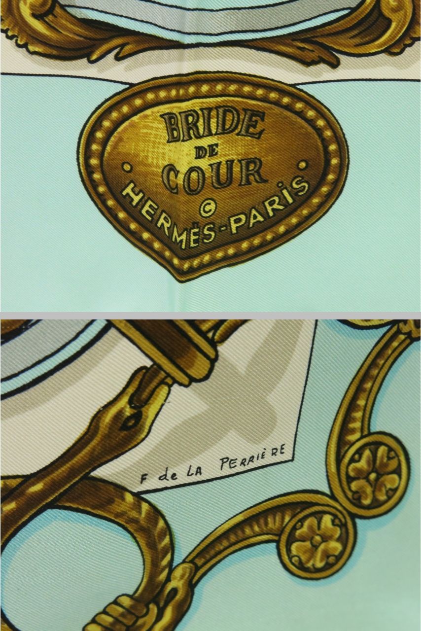 エルメス スカーフ カレ BRIDE DE COUR 法廷の勒 素材タグなし シルク グリーン系 フランス製 HERMES 18707104 GLOBALQUALITYIMPORTS_COM