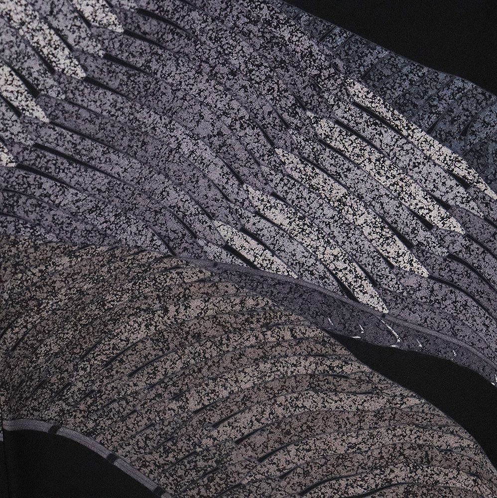 付け下げ 絞り 黒地 モノトーン 鹿の子 モード 紋無し 着物 091a d