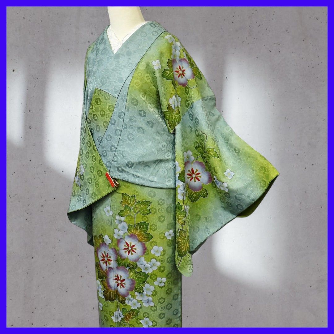 三日月とうさぎ a0307 正絹 袷付下げ 手描き花模様 菊菱亀甲の地紋の検索結果