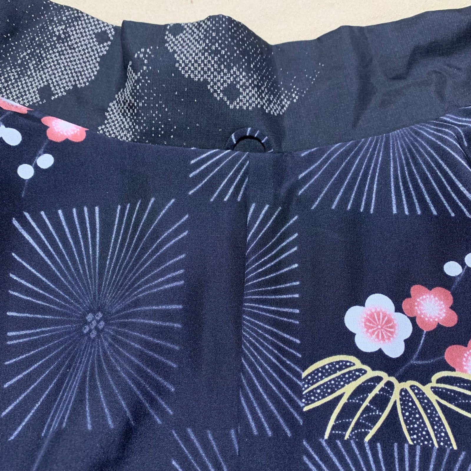 道中着 単衣 ロング 麻の葉に花柄模様 消炭黒色 H-4114