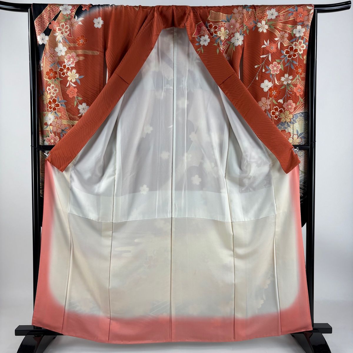 振袖 身丈162cm 裄丈65cm M 袷 桜 流水 金糸 金彩 茜色 正絹 秀品の検索結果