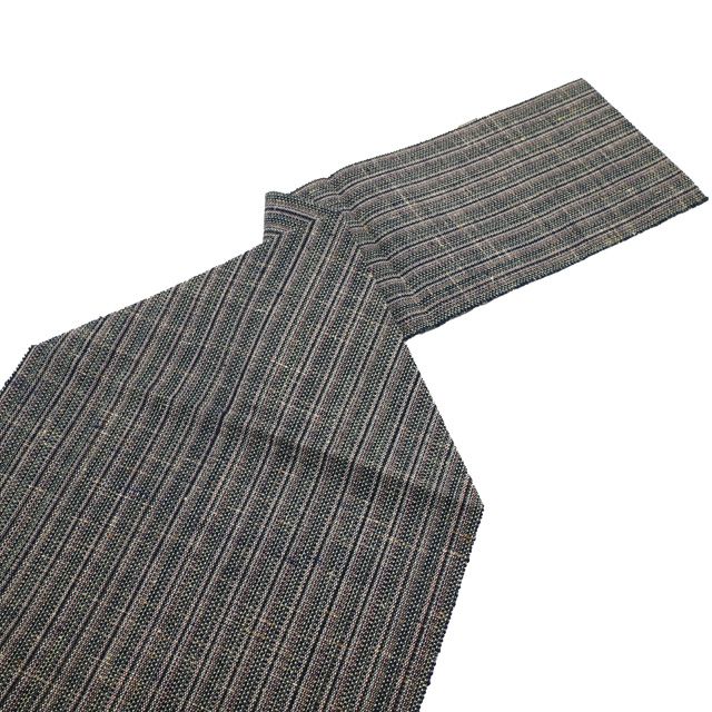 新古品 すごい値 名古屋帯 八寸 正絹 全通 米沢 米澤 齋英織物 ぜんまい糸織 花吹雪 黒 紺 縞 カジュアル 仕立て上がり 春 秋 冬 観劇 お食事 ショッピング リサイクル すごいね みやがわ neb01544の検索結果