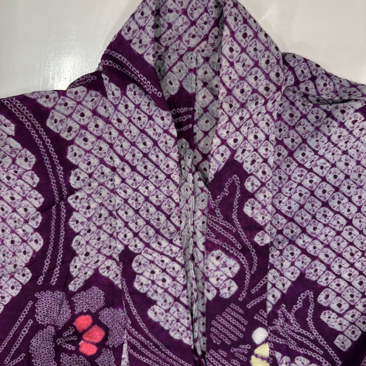 浴衣 身丈154.5cm 裄丈66.5cm M 絞り浴衣 草花 幾何学 赤紫 綿 GLOBALQUALITYIMPORTS_COM