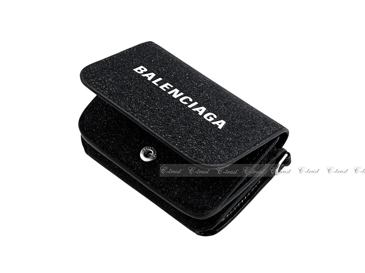 BALENCIAGA バレンシアガ 財布 CASH ミニ ウォレット ストラップ チェーン ラメ ロゴ イタリア製 1090 ブラック L889 GLOBALQUALITYIMPORTS_COM