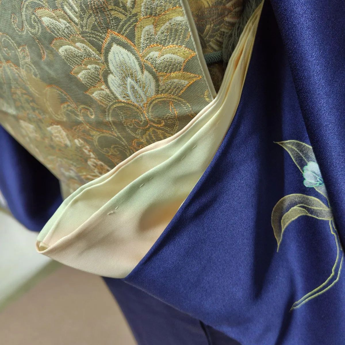 オリジナル ️帯付け二部式かんたん着物 ️濃紺ゆり柄 付下げ 袷 替袖付きの検索結果