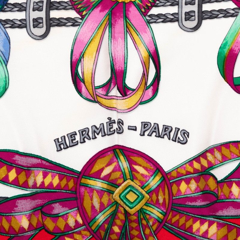 エルメス カレ90 Pasementerie 紐飾り レッド ホワイト マルチ シルク レディース HERMES 1-0229413