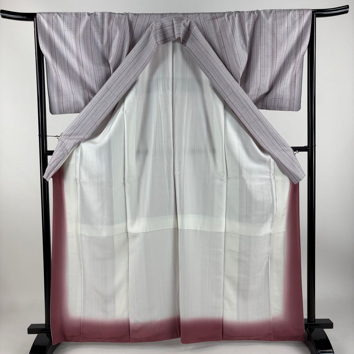 紬 身丈167cm 裄丈67cm M 袷 縦縞 灰紫 正絹 GLOBALQUALITYIMPORTS_COM