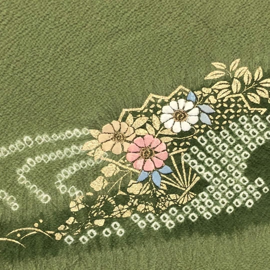 付下げ 流水に花模様 刺繍 絞り 梅幸茶色 縮緬 金彩 K-5281の検索結果