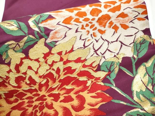 平和屋着物 アンティーク 大正ロマン 九寸名古屋帯 総刺繍 草花文 金銀糸 正絹 DAAX8720cm